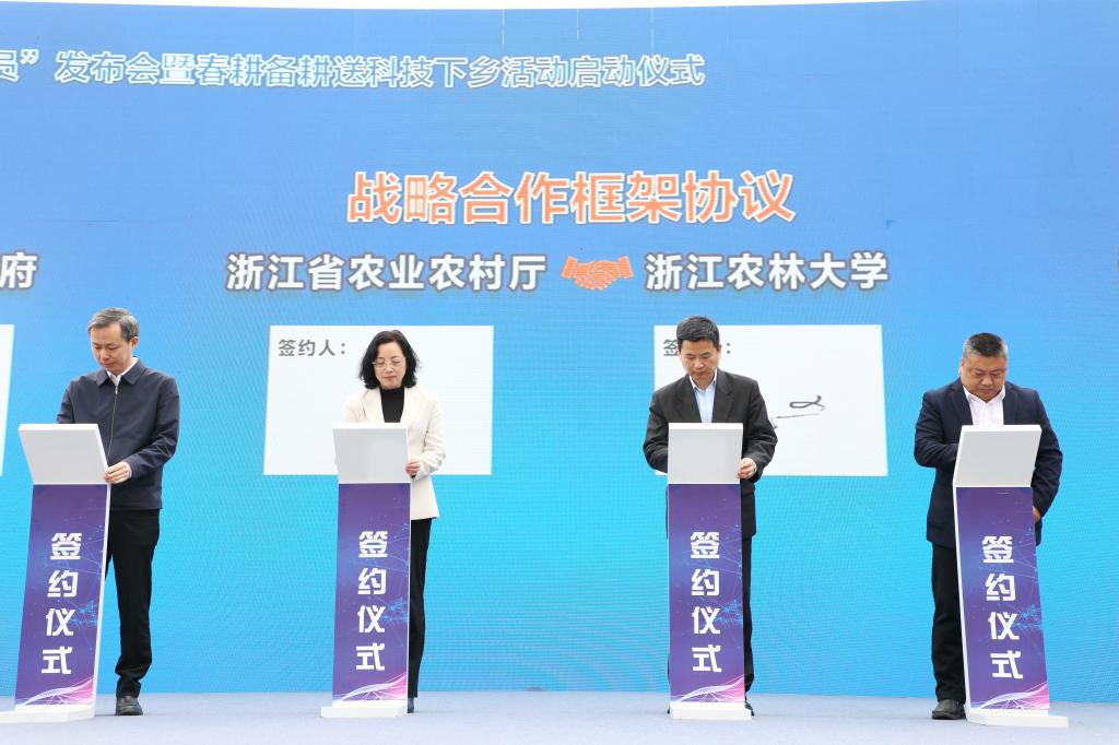 三月春風(fēng)暖,大地共“耕”新。3月26日上午,2024年浙江省“最美浙江人·最美農(nóng)技員”發(fā)布會(huì)暨春耕備耕送科技下鄉(xiāng)活動(dòng)啟動(dòng)儀式在紹興市上虞區(qū)舉行。校長(zhǎng)沈希應(yīng)邀出席活動(dòng),并代表學(xué)校與省農(nóng)業(yè)農(nóng)村廳簽訂戰(zhàn)略合作協(xié)議。
