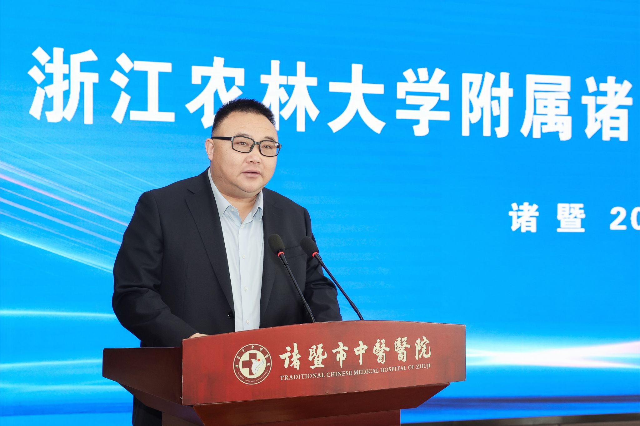 浙江農林大學附屬諸暨醫院(非直屬)是學校在生命健康領域的重要探索。我校校辦、組織部、科技處、生命醫學交叉研究中心等部門負責人,諸暨市府辦、衛健局等單位相關負責人,諸暨市中醫醫院全體班子成員、中層干部及分院院長等200余人參加儀式。