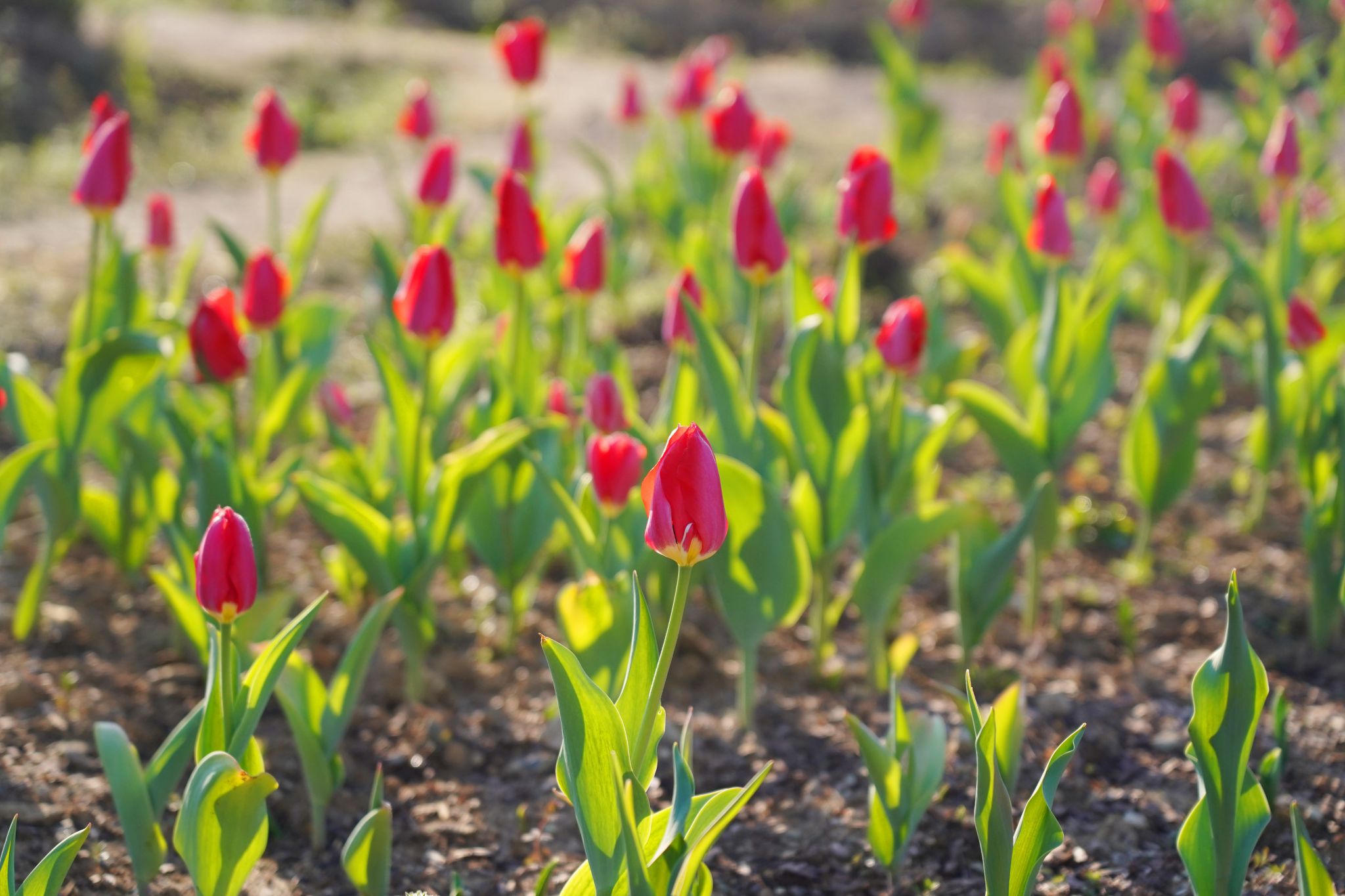 粉白的櫻花 火紅的郁金香 淡雅的繡球競相綻放