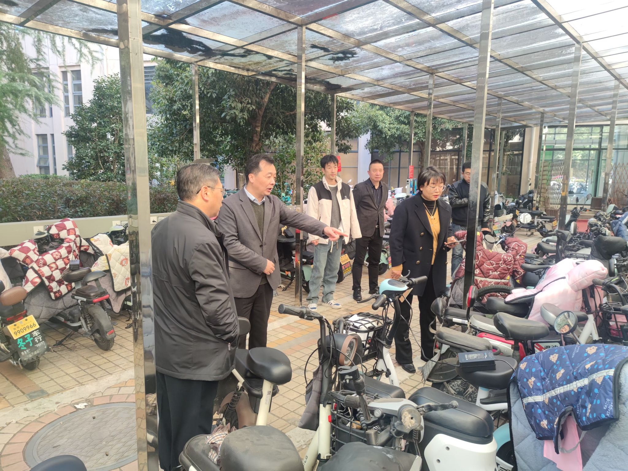 11月28日,按照上級(jí)要求和近期全省學(xué)校安全穩(wěn)定視頻工作會(huì)議精神,副校長(zhǎng)徐愛(ài)俊、校黨委副書(shū)記倪建均帶隊(duì),開(kāi)展了校園安全隱患大檢查。檢查組一行走訪了學(xué)2、學(xué)6實(shí)驗(yàn)室、教一樓頂露臺(tái)、學(xué)15停車及充電場(chǎng)所、D區(qū)學(xué)生公寓施工場(chǎng)地、小西門校門管理、A1、A2學(xué)生公寓、東湖食堂等地,學(xué)工部、研工部、設(shè)備處、基建處、公管處、保衛(wèi)部和后勤服務(wù)中心相關(guān)負(fù)責(zé)人陪同檢查。