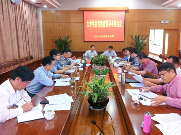 會上,學生處負責人匯報了前期大學生村官擇優選聘工作的基本情況,對大學生村官工作今后的實施方案和努力方向進行了說明。與會人員對建立大學生村官教育長效培養機制相關政策進行了研討。