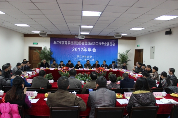 浙農林大新聞網訊 12月15日,浙江省高校后勤協會思想政治工作委員會(以下簡稱省高校后勤思政會)2012年年會在我校召開。省教育廳計財處副處長周武漢,省高校后勤協會副會長、溫大副校長任柏強,我校副校長王自勇,省高校后勤協會秘書長、浙江工商大學公共事務管理處處長劉奇應邀出席會議。我校后勤集團負責人和來自全省25所高校的共39名代表參加了會議。
