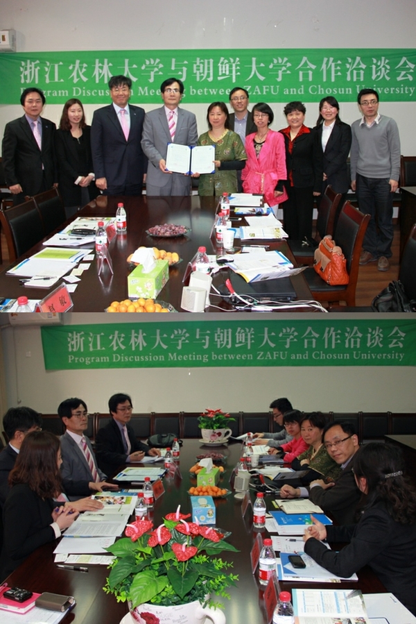 浙農林大新聞網訊 4月18日,韓國朝鮮大學(Chosun University)代表團一行四人來校訪問洽談。國際教育學院和國際合作與交流處相關人員同代表團一行進行了洽談交流。雙方繼上一次洽談內容,進一步探討了兩校合作進行學生交換、學分互認、學術交流、語言培訓等項目,并確定了兩校框架性合作協議。