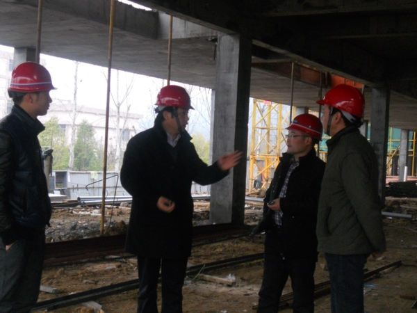 在施工現場,校領導聽取校建設處負責人的工作匯報后,又仔細詢問了工程進展情況,并對工程的施工質量、施工進度、施工安全及功能布局等提出了一些指導性意見。周國模強調,要強化質量意識,狠抓質量管理,有關單位要加大督促力度,發現問題要及時有效處理,把國家級工程實驗中心建設好。