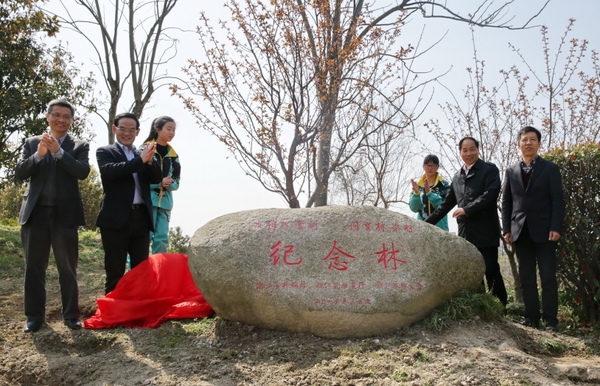林云舉、于永明、宣勇、周國模共同為“共植珍貴樹,同育棟梁材”紀念林刻石揭幕,并與師生一起揮鍬鏟土、填泥澆水,植下一片新綠。