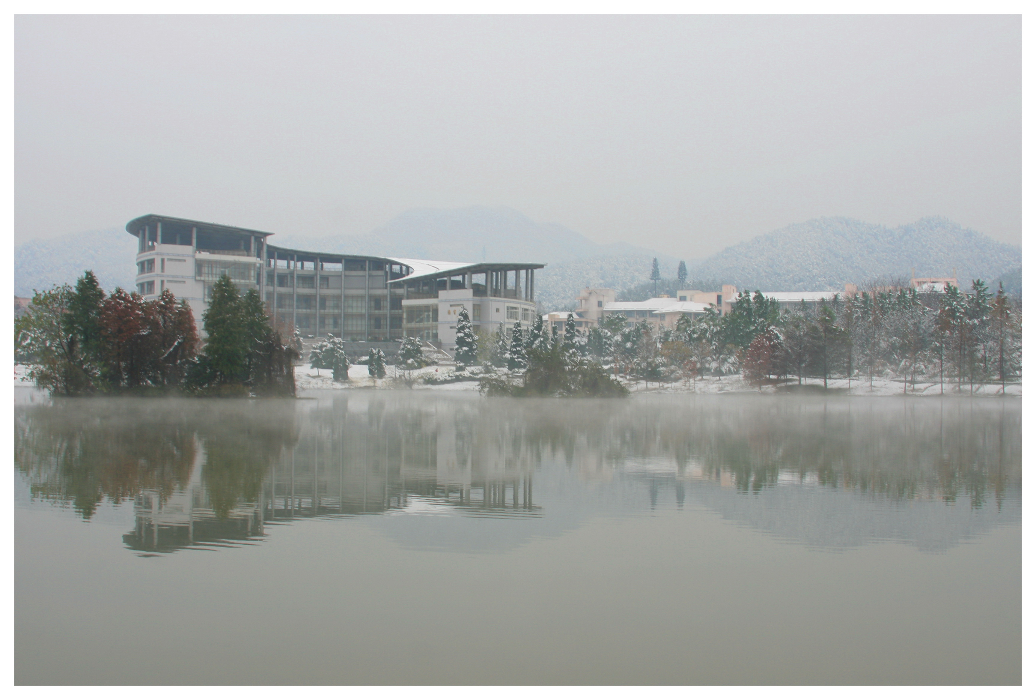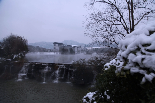絲絲寒意從窗縫滲入,即使在屋內(nèi),亦是頗冷,陽(yáng)臺(tái)遠(yuǎn)眺,雪下著下著,竟越發(fā)大而密了。墨綠的遠(yuǎn)山襯著白雪,靜謐悠然,仿佛從天地之初就這樣契合。這美景動(dòng)人,總想與友共享,若晚來(lái)天欲雪,能飲一杯無(wú)?
