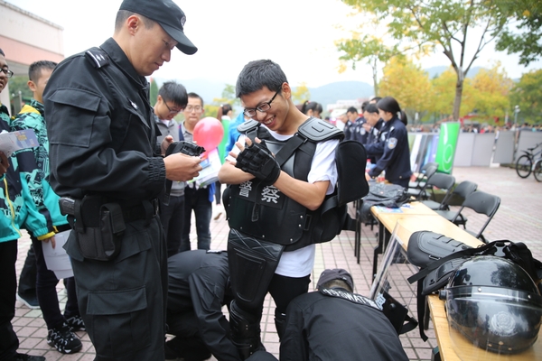 演習結束后,現場人員還一起觀看了治安、交通、消防等安全圖片展和消防、防暴警用裝備展,并參與了消防體驗活動。