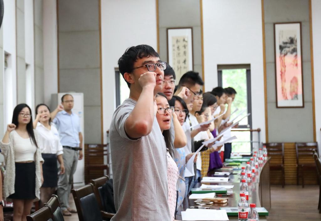 入職儀式上副校長(zhǎng)沈希為新教師代表頒發(fā)校徽和工作證,他代表學(xué)校黨委、行政對(duì)新教師的到來表示歡迎,希望大家要按照習(xí)近平總書記對(duì)人民教師的要求,做“四有”好老師。在深入分析學(xué)校當(dāng)前面臨的發(fā)展機(jī)遇和挑戰(zhàn)后,沈希指出,浙江農(nóng)林大學(xué)要成為有識(shí)之士創(chuàng)新創(chuàng)業(yè)的熱土,各類人才展示抱負(fù)的天地,不斷為教師們提供良好的學(xué)習(xí)、工作和生活環(huán)境。同時(shí)也期待廣大教師們?yōu)閷W(xué)校目標(biāo)的實(shí)現(xiàn)提供智慧和力量。