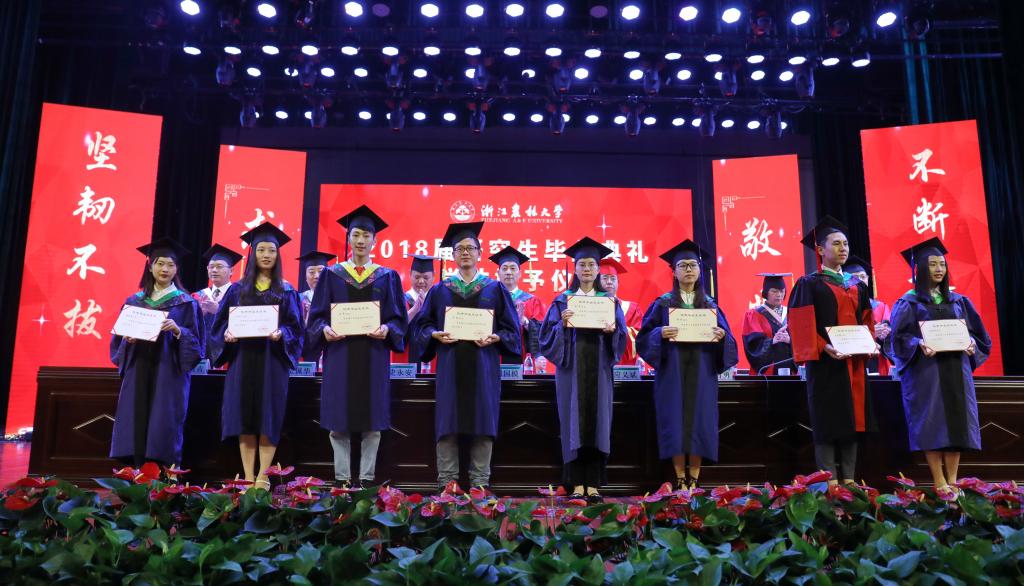 6月23日,學校隆重舉行2018屆研究生畢業典禮暨學位授予儀式。校黨委書記周國模,校長應義斌,副校長王自勇、金佩華、沈月琴,校黨委委員、宣傳部部長胡祖吉,校黨委委員、組織部部長童曉暉等出席典禮,典禮由校黨委副書記史永安主持。