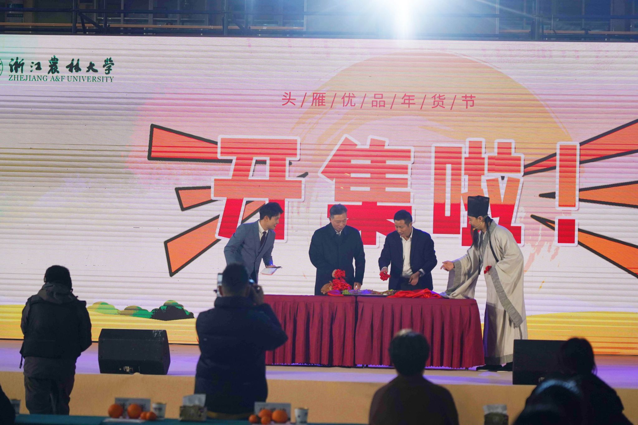 今天開張的浙江農林大學“頭雁優品”年貨節熱鬧非凡。128家“頭雁”企業和“農創客”們帶去了500多種特色農副產品,該校的教師團隊自主研發的科技成果也頗受歡迎。現場分為美食區、科研產品區、農事體驗區、蔬果區、綜合區等5個區塊,吸引了數以千計的師生、市民前往選購。