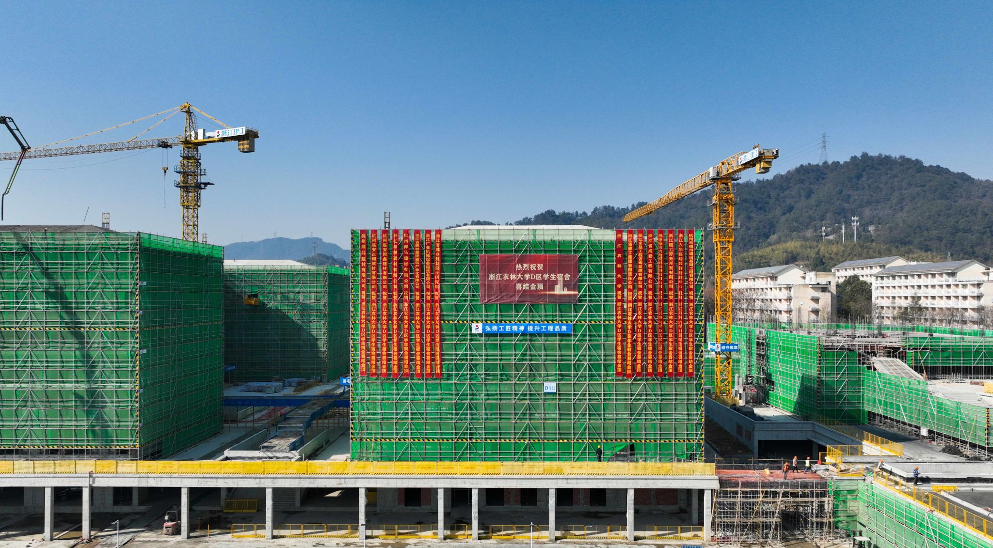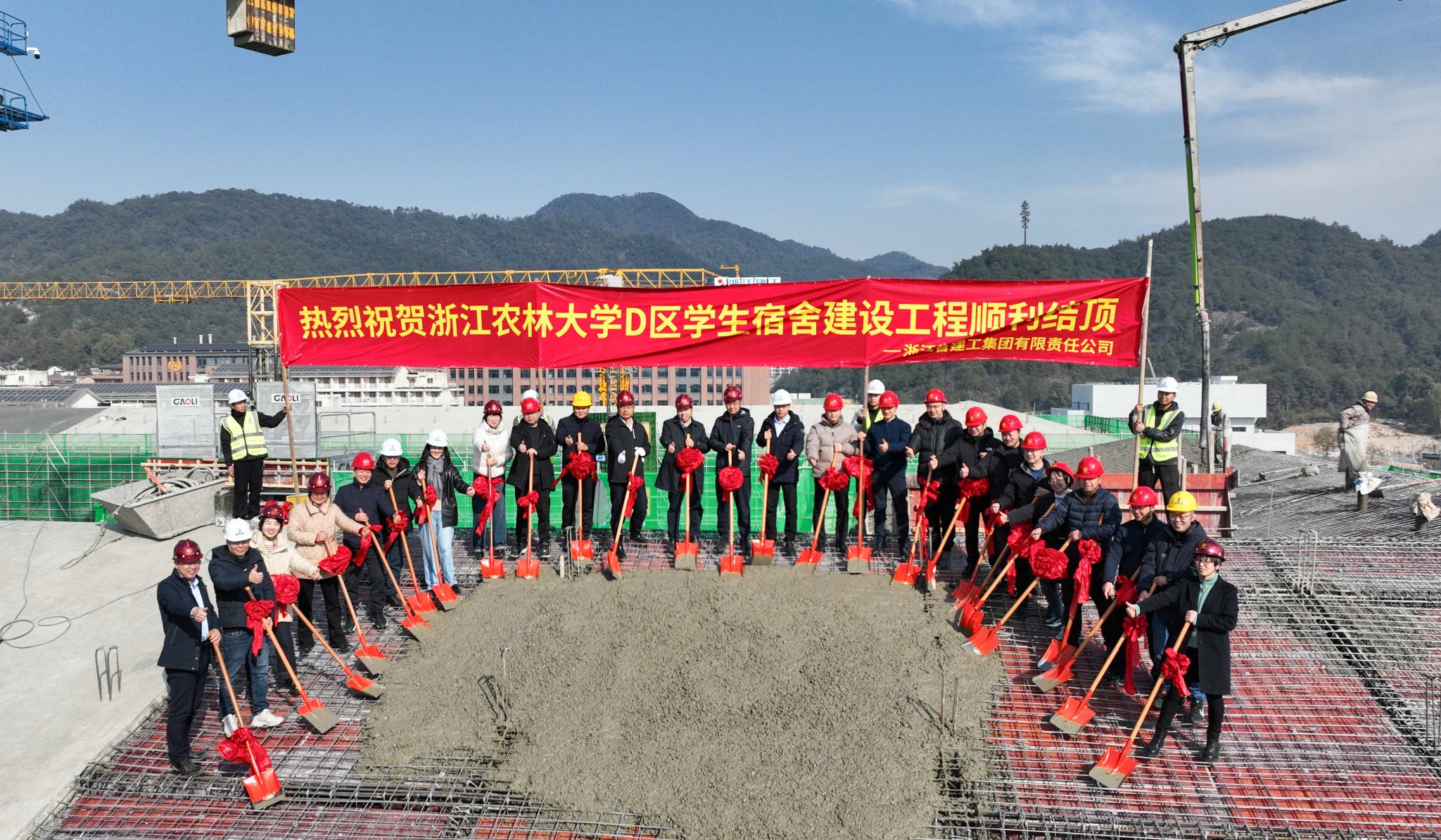 1月18日,伴隨著最后一方混凝土的澆筑到位,浙江農林大學東湖校區D區學生宿舍建設工程兩幢宿舍樓主體結構順利結頂。該工程竣工交付使用后,可新增2800余張床位,預計于今年9月份交付使用