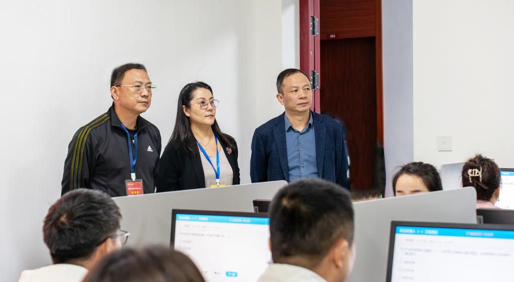 浙江省技能人才評價管理服務中心陳慧紅科長專程來校督導,學院院長馬小輝、書記蘇小菱等領導陪同巡考。