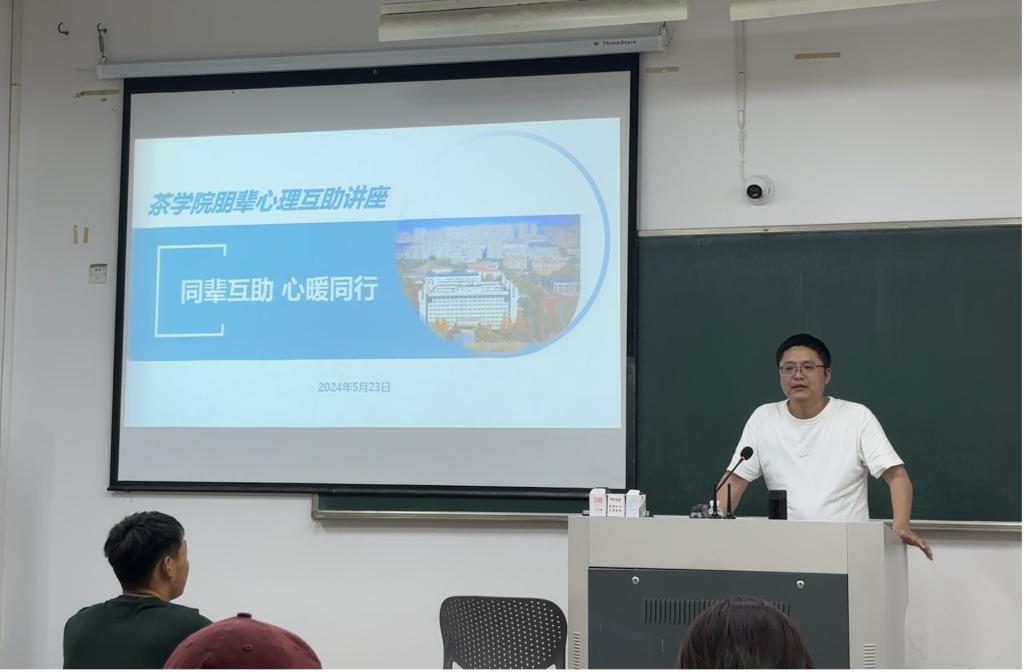 5月23日下午,茶學院在教5-402開展了朋輩心理互助講座。此次活動邀請了校心理中心專職教師陳亮作專題講座,學院全體寢室長參與此次講座。