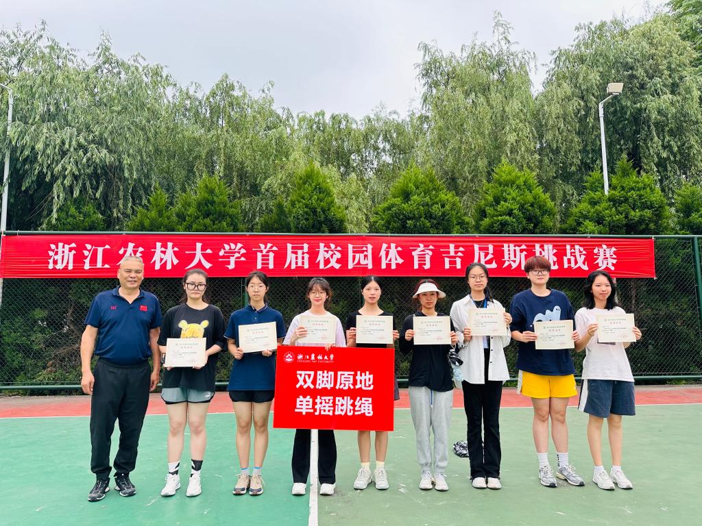 5月25日上午,由校體委主辦,體軍部、學工部和校團委共同承辦的浙江農林大學首屆校園體育吉尼斯挑戰賽在我校B區籃球場和田徑場舉行,活動旨在深入踐行“無體藝 不農林”的育人理念,進一步濃厚校園群眾體育氛圍,錘煉學生意志品質、塑造美好心靈、促進學生身心全面發展。各學院500余名學生參加了此次活動。