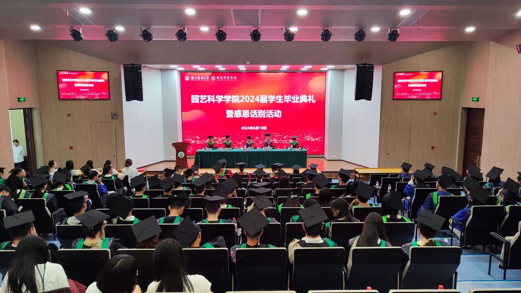 6月18日,園藝學院2024屆畢業典禮暨感恩話別活動在學三國際報告廳舉行。園藝學院院長崔霞、院黨委書記汪和生、學院相關負責人、學科專業負責人、導師代表、班主任、輔導員、2024屆本碩畢業生以及在校生代表參加典禮。