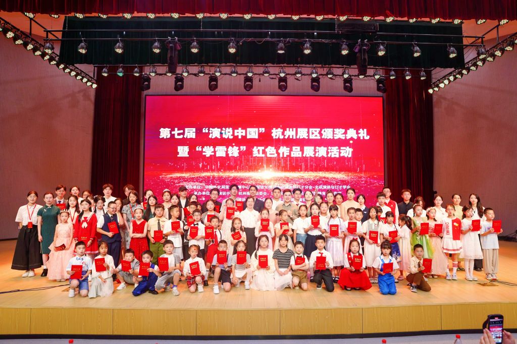 6月30日,學(xué)校“優(yōu)+”學(xué)雷鋒育人工作室聯(lián)合“演說(shuō)中國(guó)”杭州賽區(qū)組委會(huì)、大學(xué)生演講與口才協(xié)會(huì)、大學(xué)生未來(lái)領(lǐng)軍者協(xié)會(huì)等部門在衣錦報(bào)告廳開(kāi)展“演說(shuō)中國(guó)”杭州展區(qū)頒獎(jiǎng)典禮暨“學(xué)雷鋒”紅色作品展演活動(dòng)。文法學(xué)院相關(guān)負(fù)責(zé)人、雷鋒班黨支部書記、馬院教師代表、優(yōu)秀校友代表以及校內(nèi)外大中小學(xué)師生代表參加活動(dòng)。