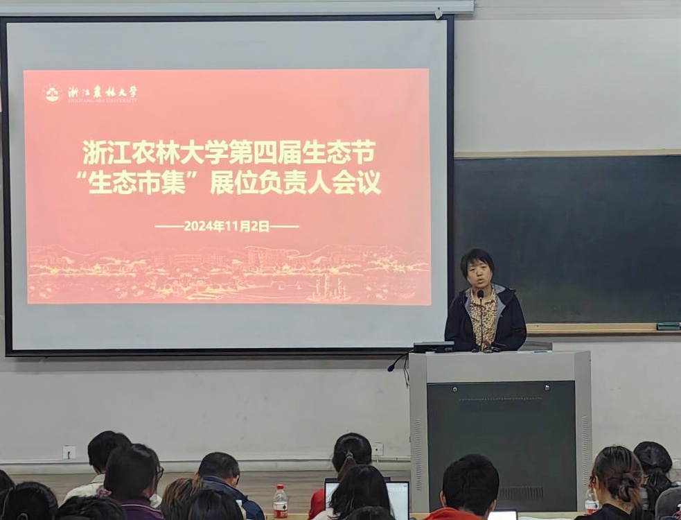 11月2日,浙江農(nóng)林大學第四屆生態(tài)節(jié)“生態(tài)市集”展位負責人會議在教2-111召開。校黨委宣傳部、教工部部長晉杜娟出席并講話,各職能部門負責人、學院負責人、展位負責人等180余人參與本次會議。