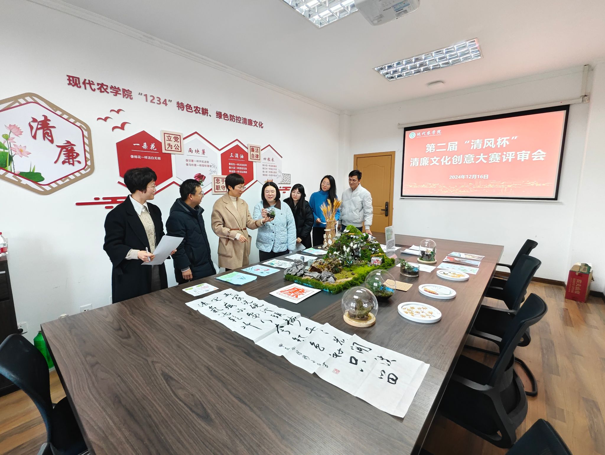 近日,農學院在學15-606舉辦第二屆“清風杯”廉潔文化創意大賽評比活動。農學院黨委書記梁衛玲及相關負責人全程指導,并參與入圍作品最終評審。農學院全體紀委委員、學生辦輔導員參加活動。