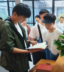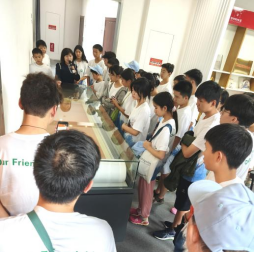 在參觀陳望道故居和望道展覽館期間,義烏工商學院原副院長何少慶教授為美籍青少年訪華團詳細介紹了陳望道的生平事跡。營員們被陳列在望道展覽館入口處的、由浙江農林大學國際學生中國文化導師汪曉亮先生捐贈的《共產黨宣言》百米書法長卷深深吸引。