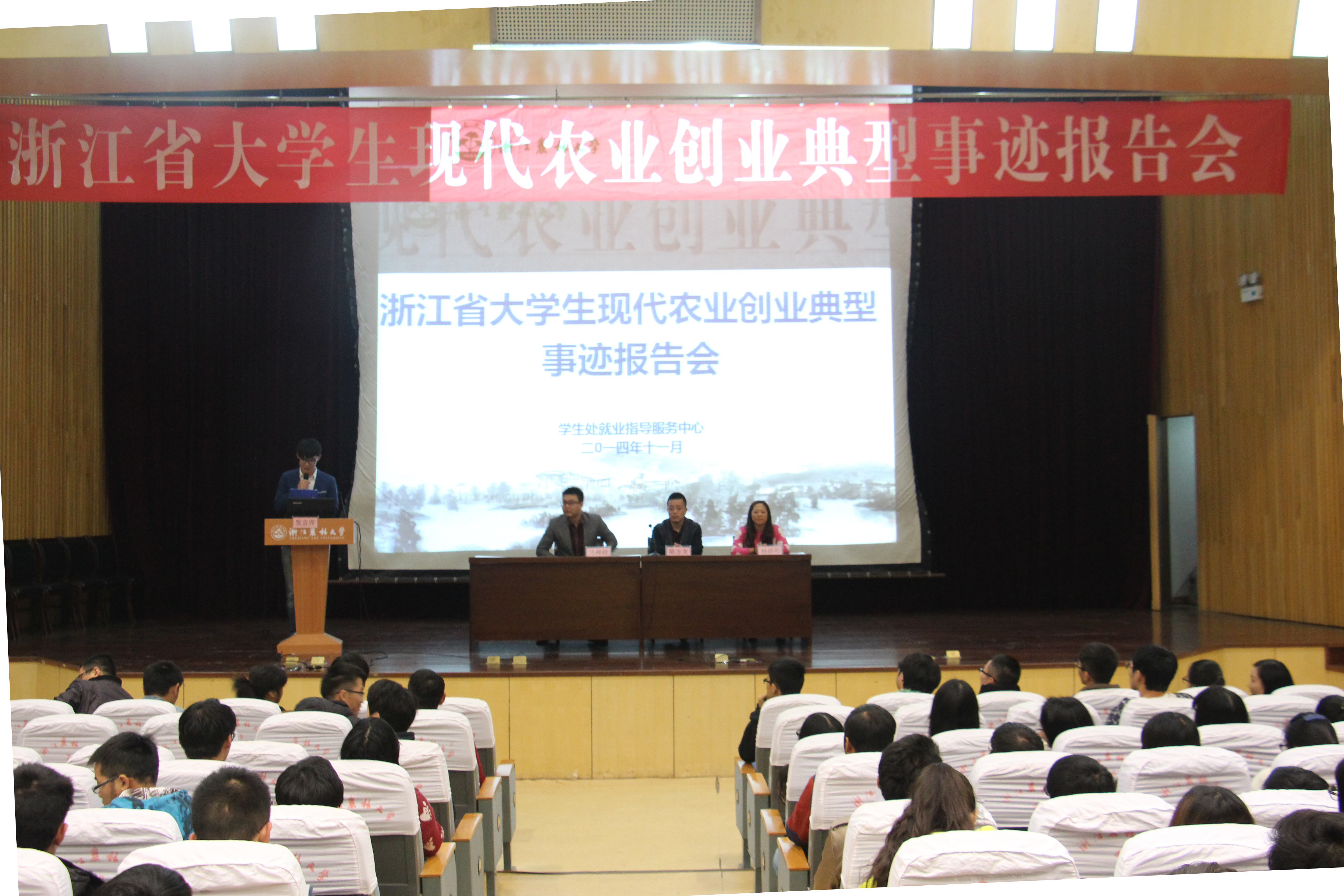 為進一步做好我校畢業生就業創業服務工作,幫助大學生們更深入地認識現代農業,激發投身農業熱情,提高自主創業的能力,11月20日,學生處就業指導服務中心邀請3位浙江省大學生現代農業創業典型來校作報告。報告會在東湖校區圖書館第一報告廳舉行。