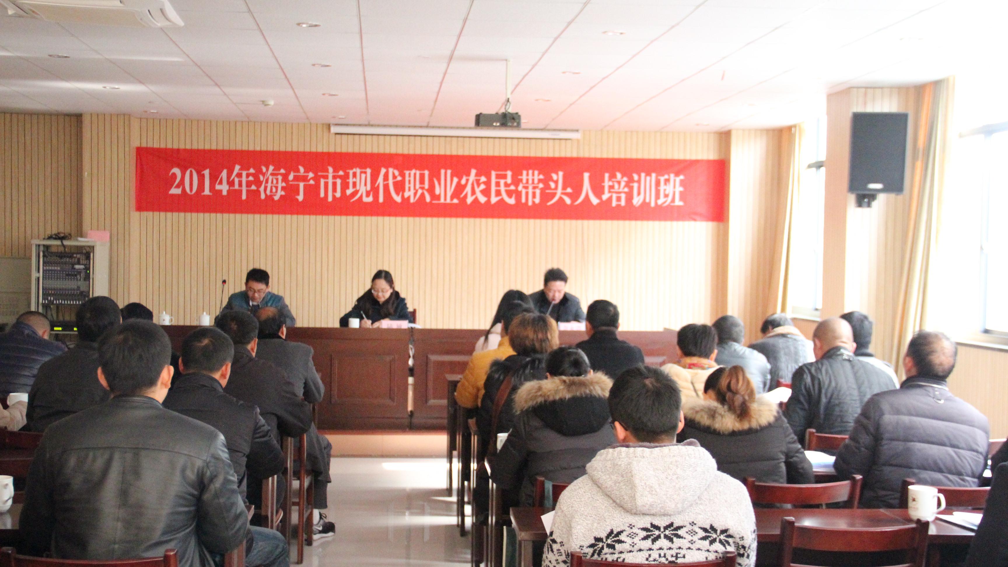 12月16日上午,2014年海寧市現代職業農民帶頭人培訓班開班儀式在我校舉行。海寧市農經局相關負責人出席儀式,繼教學院有關負責人出席并主持開班儀式。海寧市36名現代職業農民帶頭人參加培訓。