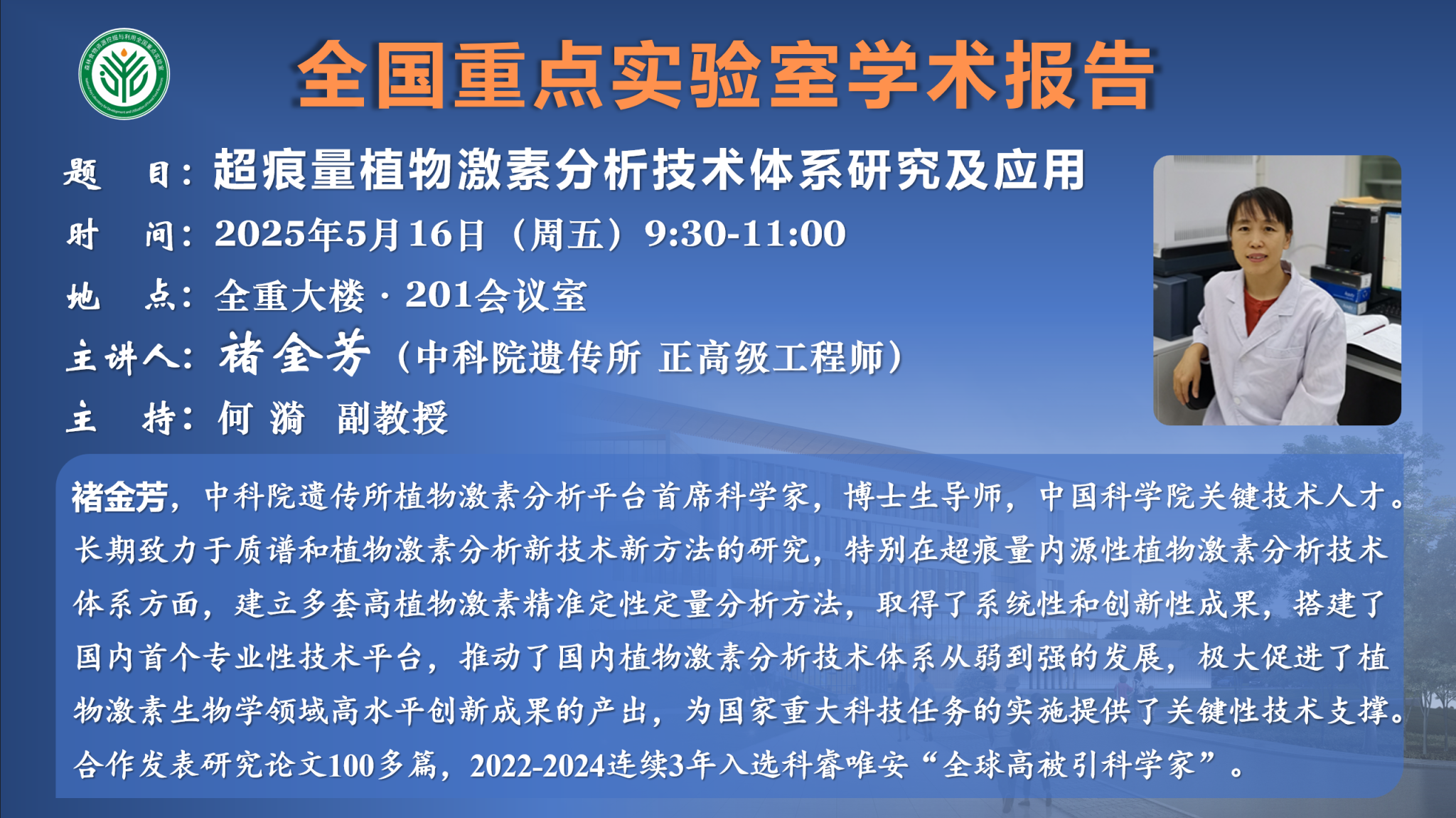 講座預告:超痕量植物激素分析技術體系研究及應用