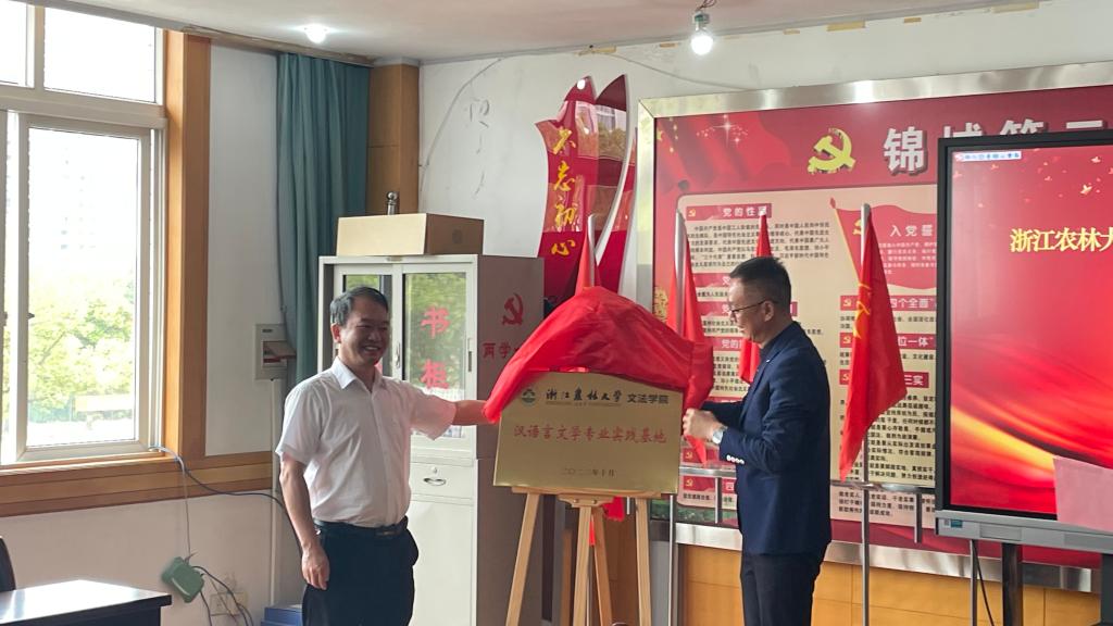 10月19日上午,文法學(xué)院與臨安區(qū)錦城第二初級(jí)中學(xué)(以下簡稱“錦城二中”)簽署共建漢語言文學(xué)專業(yè)實(shí)踐教學(xué)基地協(xié)議,并舉行揭牌儀式。文法學(xué)院黨委書記朱紅東及學(xué)院、中國語言文學(xué)學(xué)科、漢語言文學(xué)專業(yè)相關(guān)負(fù)責(zé)人,錦城二中校長凌平、副校長厲仁華、教務(wù)主任、各年級(jí)語文組備課組長等參加了簽約及揭牌儀式。