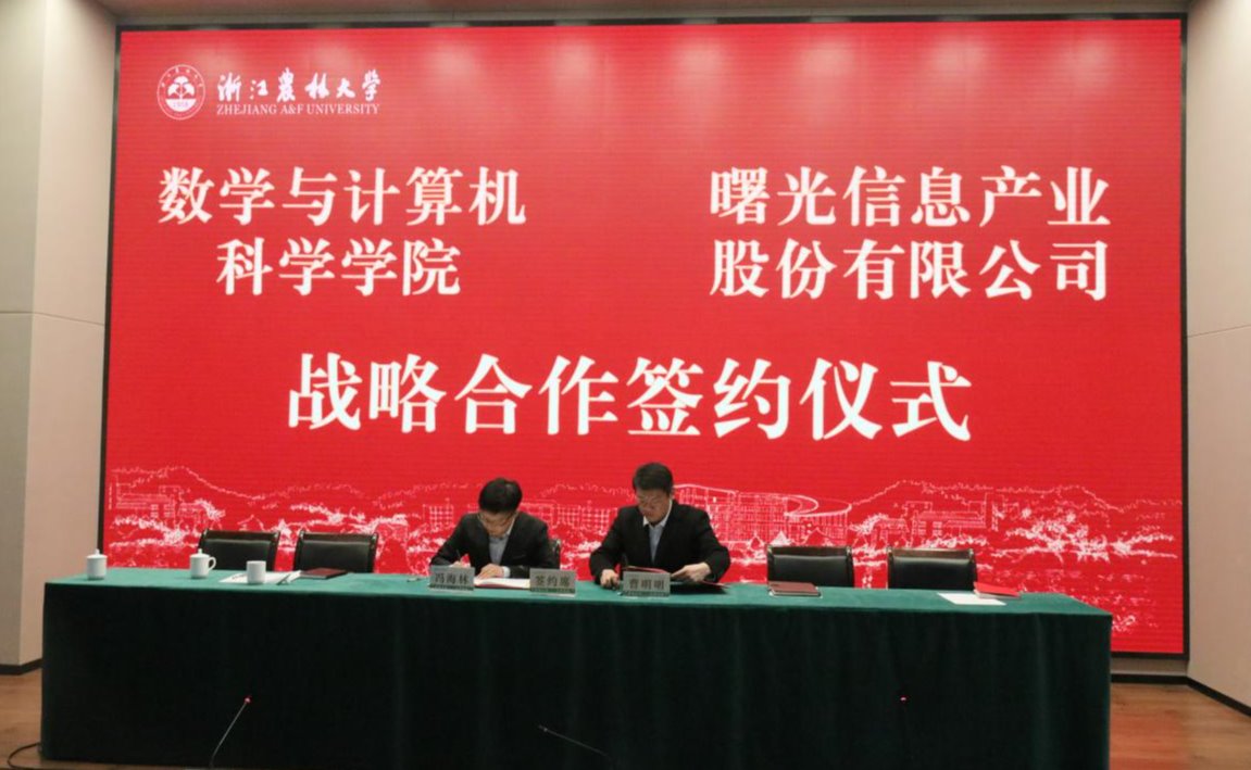 12月14日,數(shù)計(jì)學(xué)院與曙光信息產(chǎn)業(yè)股份有限公司戰(zhàn)略合作簽約儀式在學(xué)三國際報(bào)告廳舉行。中科曙光副總經(jīng)理曹明明等中科曙光高管10人,我校教務(wù)處處長郭建忠,數(shù)計(jì)學(xué)院黨政領(lǐng)導(dǎo)班子、現(xiàn)代農(nóng)林人工智能產(chǎn)業(yè)學(xué)院相關(guān)負(fù)責(zé)人出席簽約儀式。