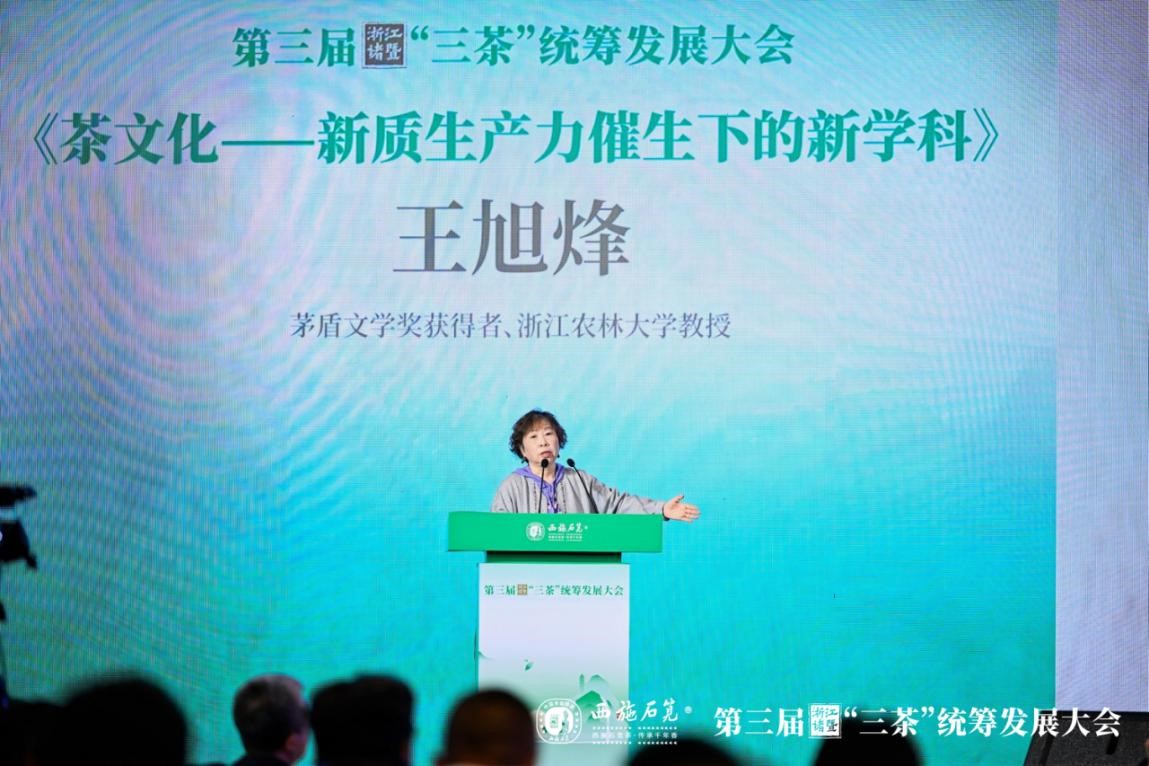 3月29日上午,在第三屆浙江諸暨“三茶”統(tǒng)籌發(fā)展大會(huì)上,茶學(xué)院名譽(yù)院長(zhǎng)王旭烽教授發(fā)表了題為《茶文化——新質(zhì)生產(chǎn)力催生下的新學(xué)科》的特邀報(bào)告,為與會(huì)者帶來(lái)了茶文化交叉學(xué)科建設(shè)新理念。