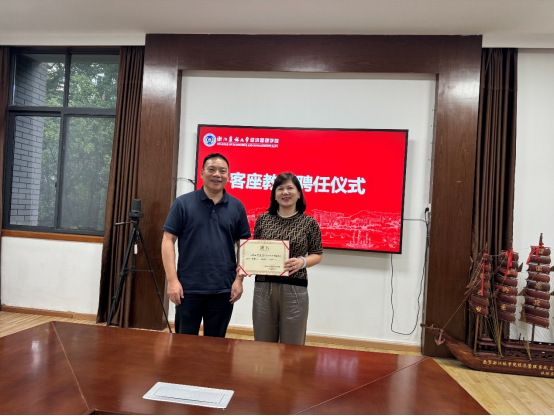 7月1日下午,經管學院與杭州宅易融信息科技有限公司實習基地簽約暨客座教授聘任儀式在西大樓208舉行。杭州宅易融信息科技有限公司董事長鄭萍萍,杭州校友會副秘書長許月明,校友辦主任哀建國,經管學院院長吳偉光、黨委書記陳勁松,金融工程本科專業師生代表參加會議。會議由陳勁松主持。