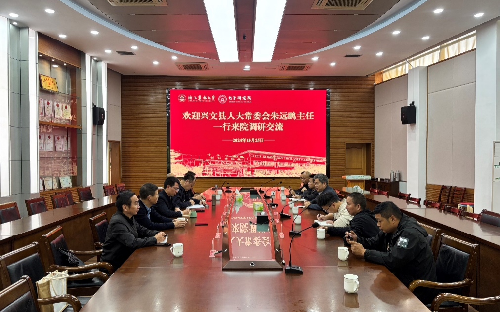 10月25日,興文縣人大常委會主任朱元鵬一行來竹研院調研交流,竹研院相關負責人,教授代表張文標、黃景達等參加座談。座談會由竹研院黨總支書記周能壽主持。臨安區農林技術推廣中心相關專家、筍竹加工企業代表等參加了活動并座談。